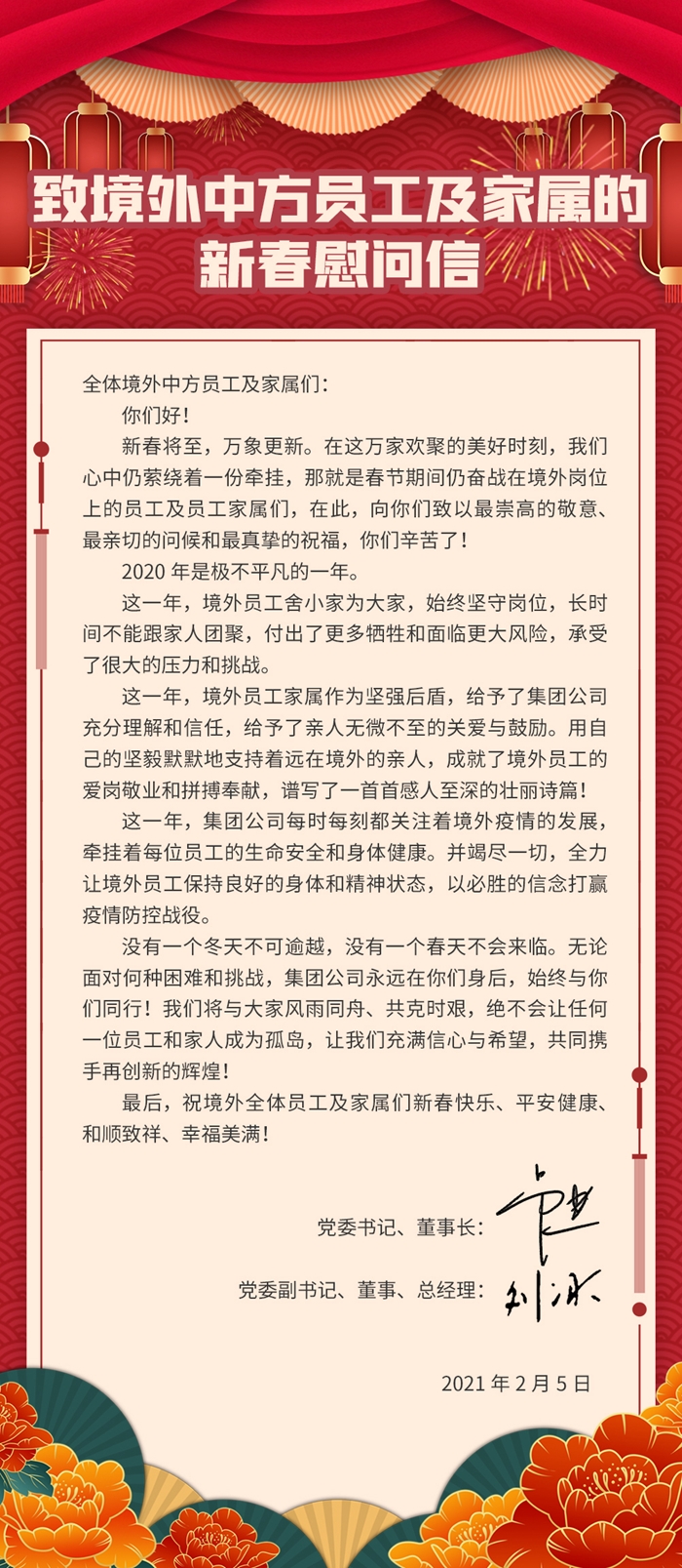 【集团要闻】致境外中方员工及家属的新春慰问信