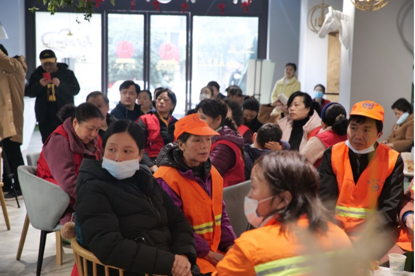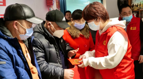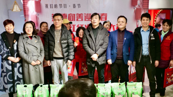 活动最暖心的一幕出现。尽管受疫情的影响,各个企业的经营都出现了不同程度的亏损,但黄金城的企业家依然用自己的大爱无私,为辖区内的环卫工人、优秀志愿者和困难居民送上油米等生活物资以及春节红包。