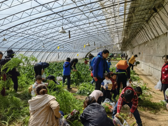 随后,大家在庄园工作人员的带领下步入草莓园和蔬菜园,纷纷搬筐提篮穿梭于田间地头,体验亲手采摘的超凡乐趣。大棚内红绿交映,香味扑鼻。大家一边采摘,一边品尝,欢声与笑语不断,快乐与热情四溢。