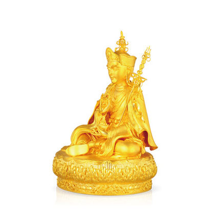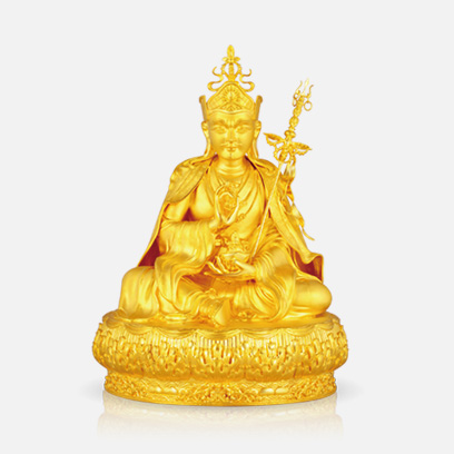 此莲师造像参照嘉靖年间藏传佛教汉地宫廷样式,工艺使用了花丝镶嵌中的库胎、合胎、錾刻手法。全手工制作,制作过程如法,殊胜。
